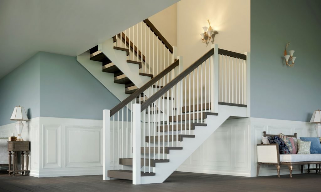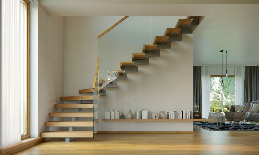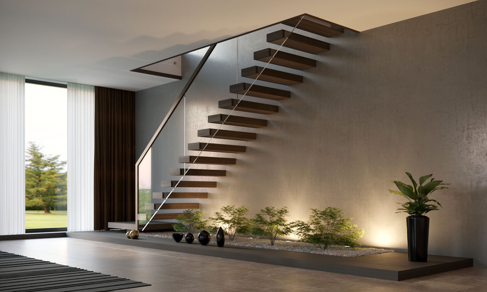 A staircase or stairway is one or more flights of stairs leading from one floor to another, and includes landings, newel posts, handrails, balustrades and additional parts.