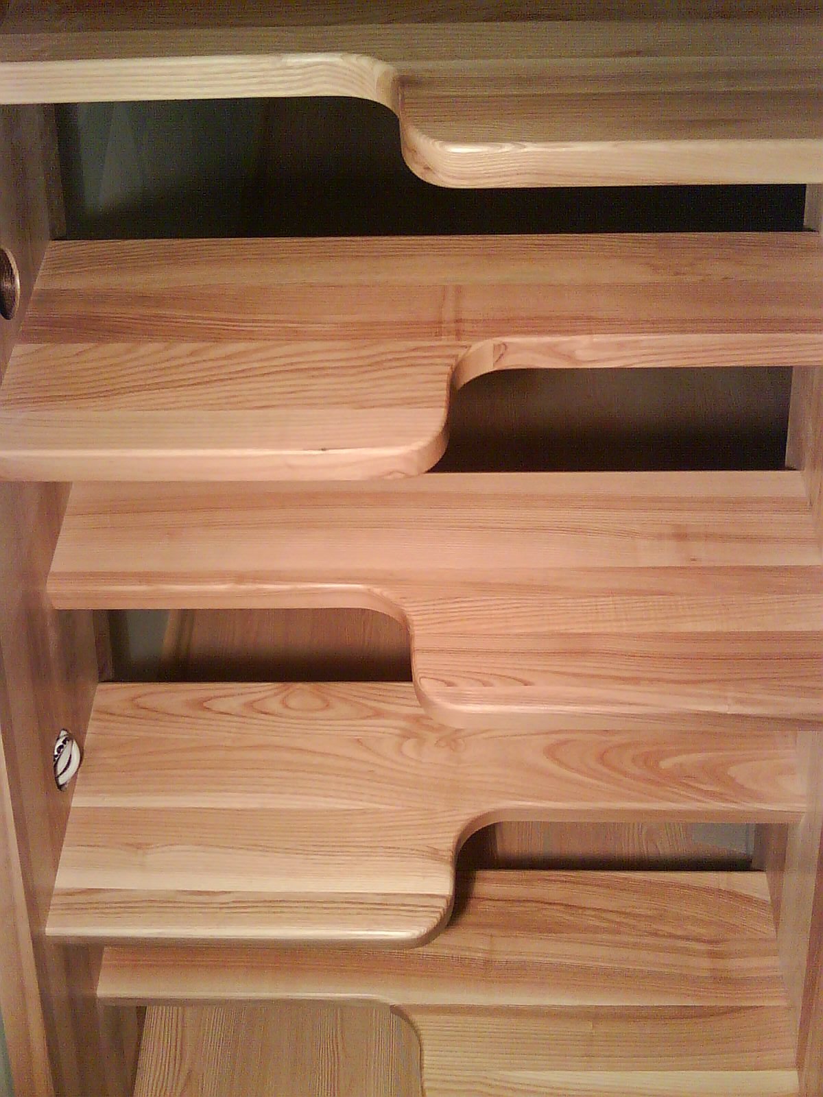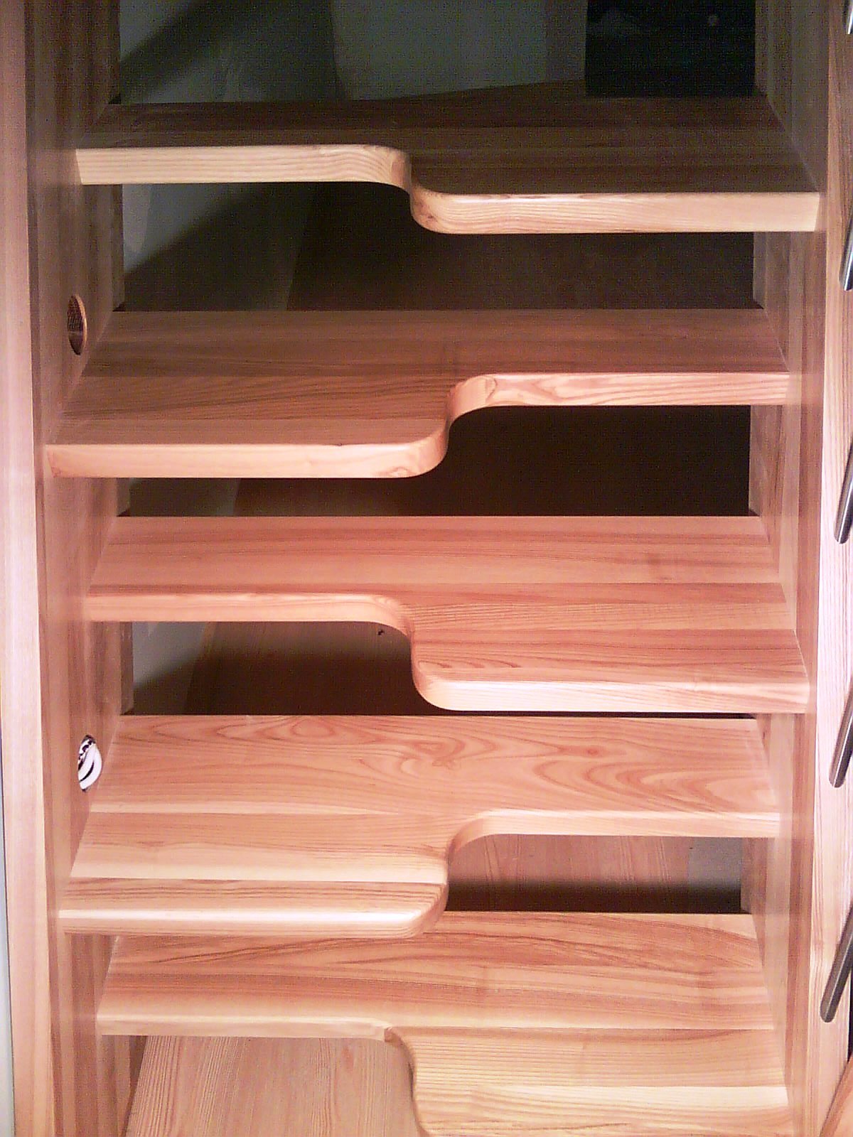 Bear‘s foot stairs have alternating treads that are spaced out in what appears to be a checkered formation. The staircase is designed to save space because it can be built steeper and narrower than a traditional one.