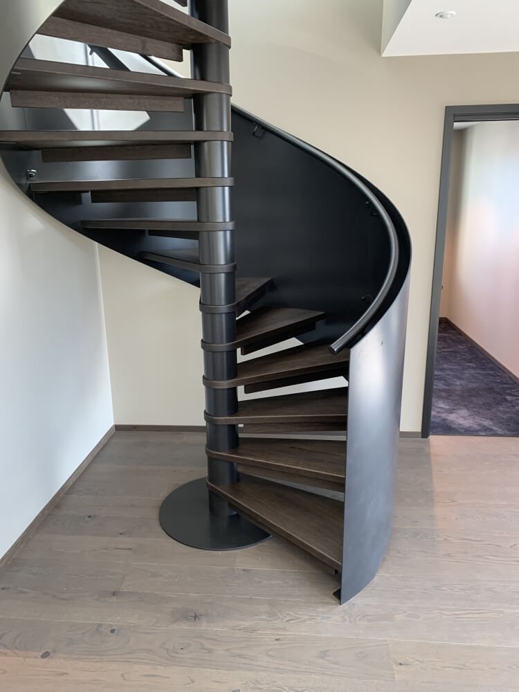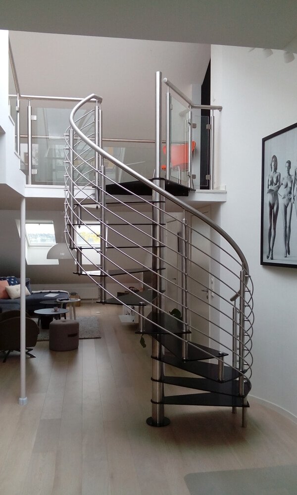 Spiral staircases save space and are usually used with small floor openings or due to chosen design features. The key difference between the models is two types of railing.